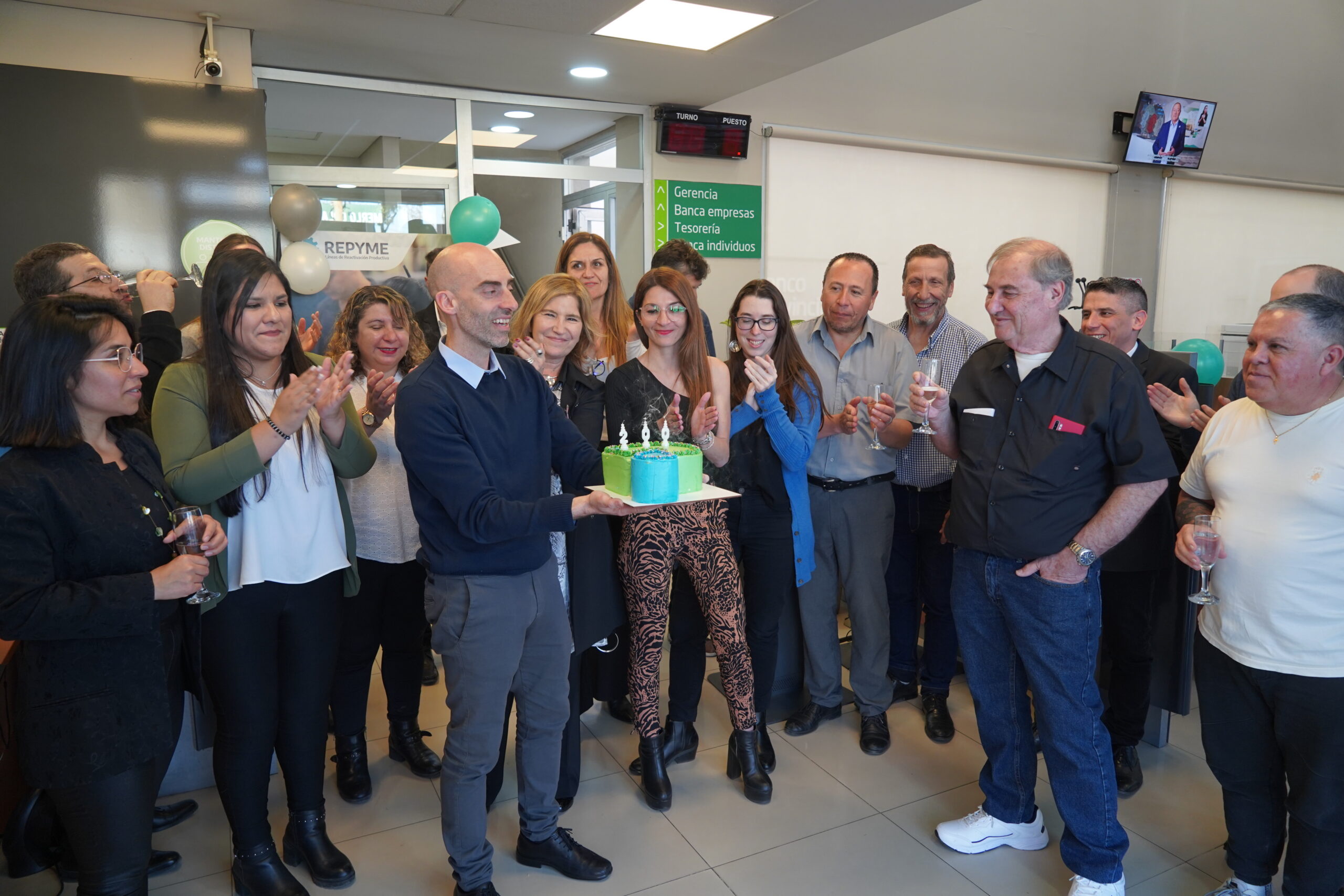 El banco ubicado en la Av. Eva Perón, entre Av. Calle Real y la calle Matienzo, realizó un brindis y conmovedores discursos tanto el gerente como los vecinos que se acercaron a la celebración.