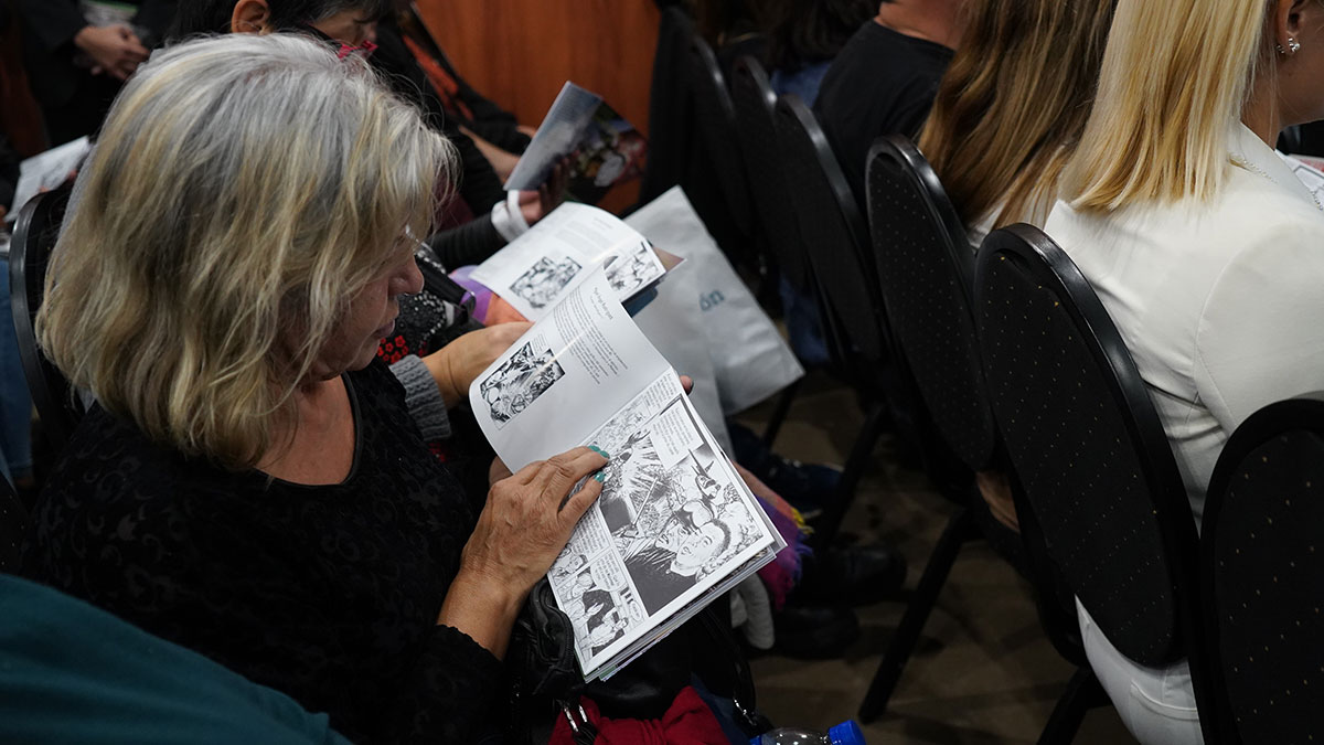 En la jornada se presentaron los capítulos 4, 5 y 6 de las historietas, que fue realizada por la Secretaría de Cultura de Merlo, donde les rinde honor a los veteranos de guerra merlenses.